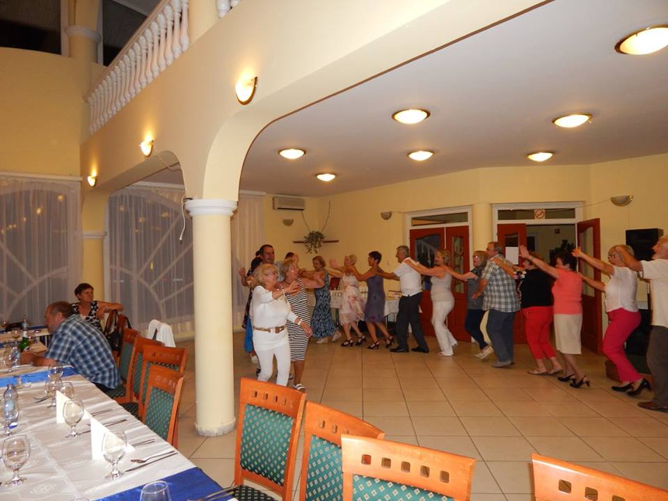 Az egész napos kirándulás után mindenki felfrissitette egy kicsit magát, hogy este a Hidi panzióban újra találkozzunk. Dr. Aracsi József elnök köszöntötte a körösladányi polgármester úrat Kardos Károlyt, aki az egyesületünk tagja. Ezután Bartis Erzsike aki szintén egyesületünk tagja, csángó hagyományőrző és népdalénekes egy csokor csángó népdallal nyitotta meg az estét, majd a finom vacsora után kellemes zenére táncolhattunk, időnként pedig népdalokat énekeltünk.